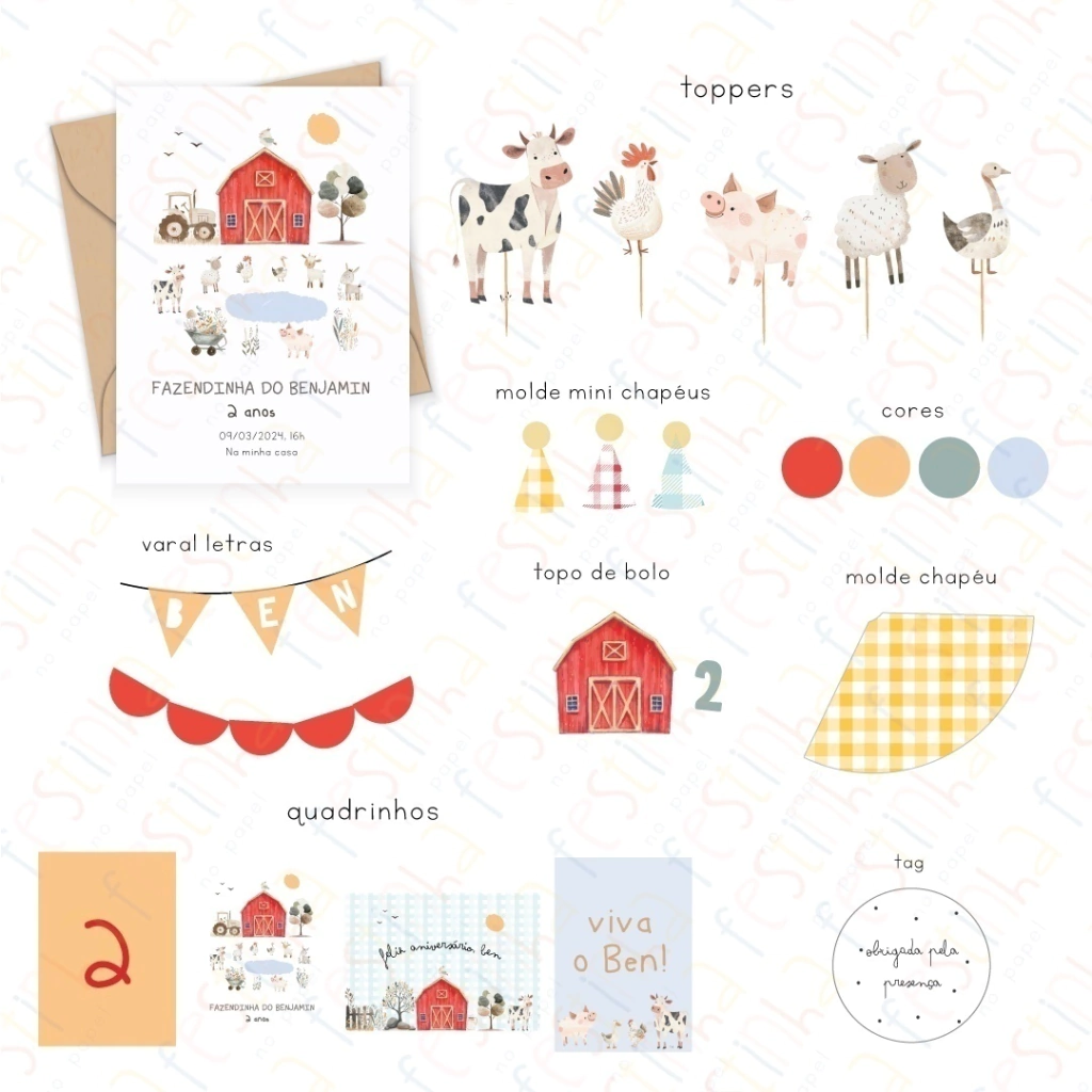 O kit de papelaria Fazendinha Aquarelada acompanha: