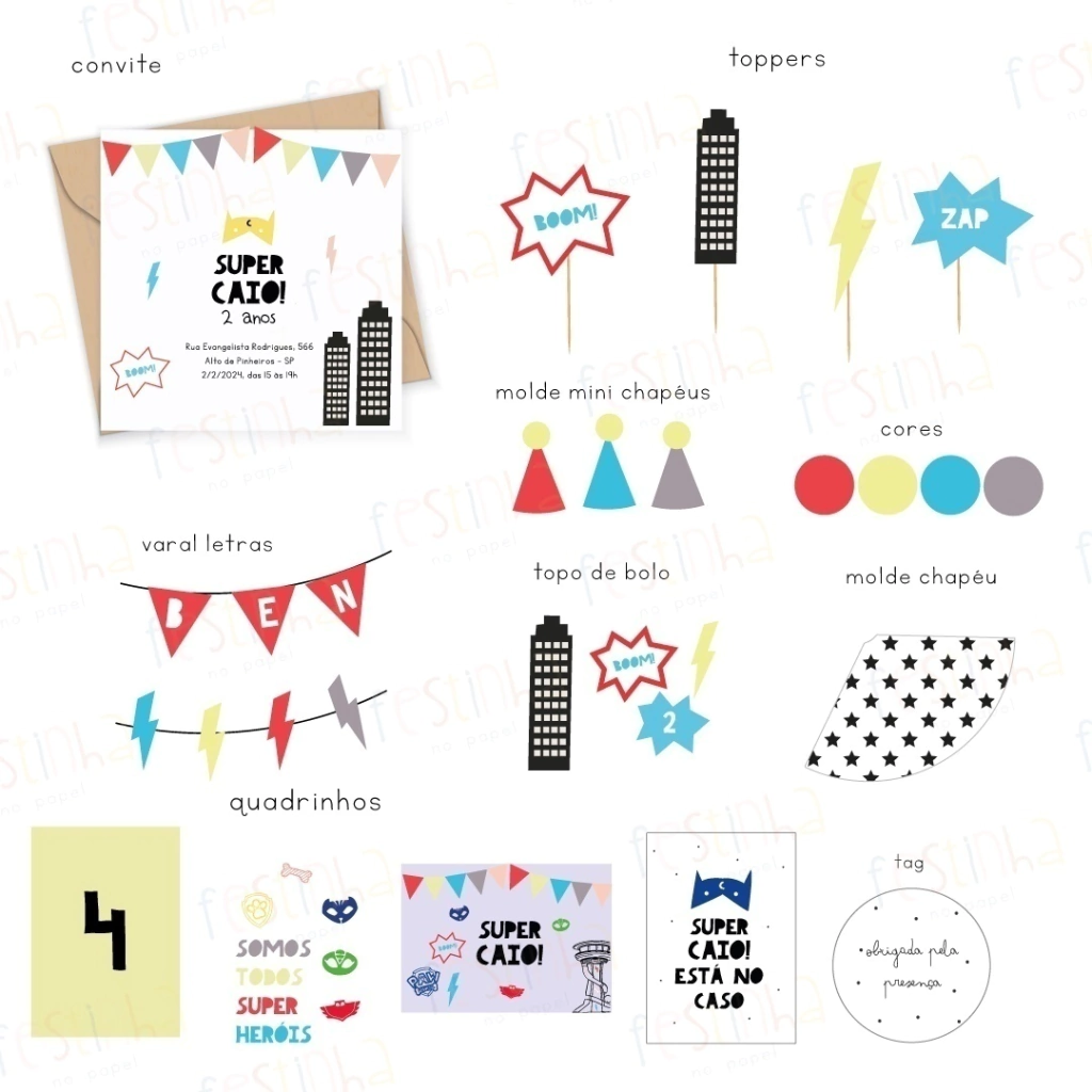 O kit de papelaria Super Heróis Moderninho acompanha: